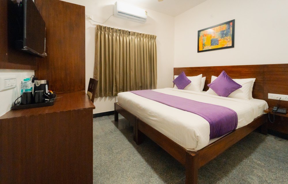 The Hoppers Stop Apartment Hotels is one of the most stylish hotels in Building No.12, Krishnaja Avenue, Cross International Airport Road, near Kogilu, Yelahanka, Bengaluru, Karnataka 560064. This modern take on the traditional alpine lodge.